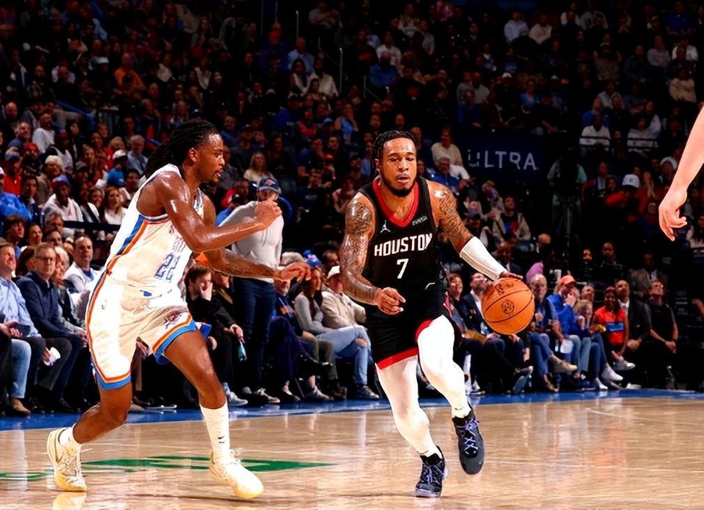 易边再战,小史密斯连中两记三分,申京顺下送低手妙传,奥科吉底线空切完成双手暴扣,火箭开局打出10-2反超比分。多尔特里突外投连拿5分,止住颓势。杜兰特单打强突切特上篮2+1,后者4犯无奈被换下。威金斯接球三分手起刀落命中,杰威和卡鲁索接连反击得手,雷霆重新领先到8分。JD-戴维森三分急停命中后再跳投得手,三节打完,火箭77-75落后雷霆。
