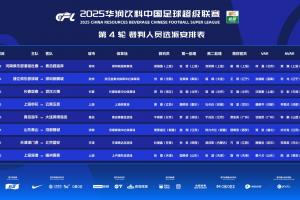 体育资讯04月01日讯 中足联公布2025赛季中超第4轮裁判选派安排,麦麦提江主哨泰山vs蓉城,马宁本轮比赛无执法任务。