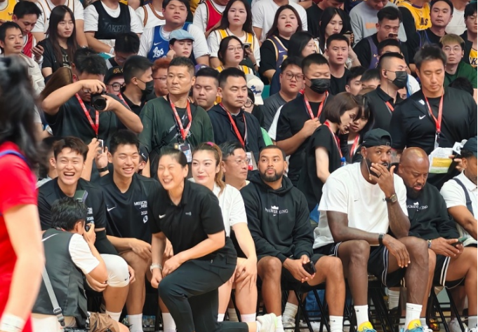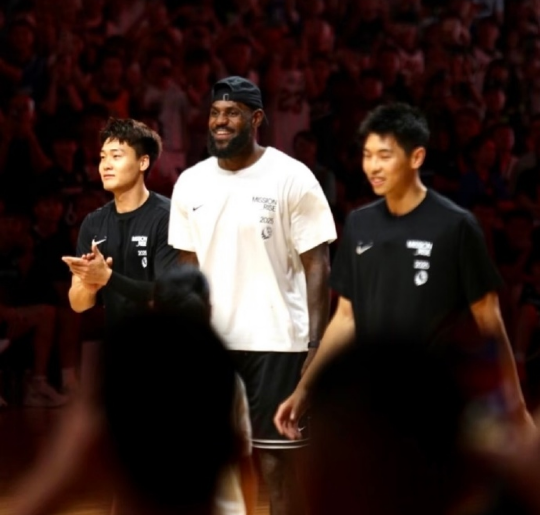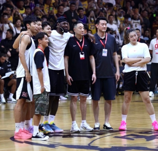 作为同一个品牌签约球员的中国女篮国手李梦现身,并且上场参与了一场女篮比赛。此外,赵睿与崔永熙两位中国男篮国手,他们坐在詹姆斯身边,两人更是笑开了花,而跟随美高球队参加热身赛的国青核心张博源也在现场。