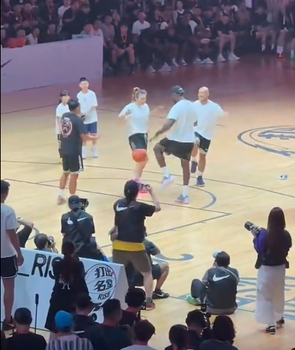 詹姆斯随后来到成都高新体育馆现场,现场球迷爆满热烈欢迎詹姆斯。詹姆斯现身引发欢呼,尤其是詹姆斯奉献双手暴扣让现场球迷嗨翻天。詹姆斯在完成暴扣后,与崔永熙、赵睿相继打招呼击掌,并且与李梦一起进行霸王步表演,以及拥抱庆祝,但随后詹姆斯立即超远三分投篮不中。