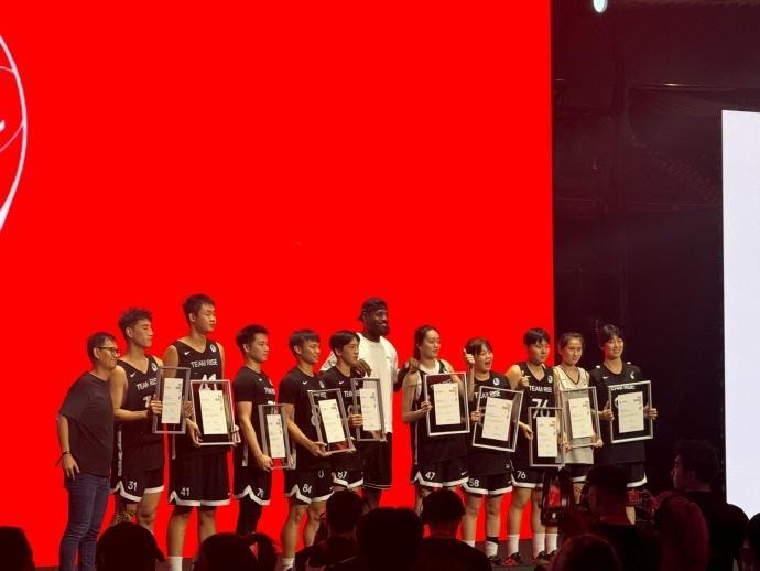 詹姆斯还与王非指导、王博指导、李梦、赵睿、崔永熙,以及足球运动员韦世豪一起合影留念。赵睿等国手随后登场,参与中国草根球员对阵耐克精英青年联赛队的比赛,詹姆斯在场下观战,并在之后上台评选颁奖合影。